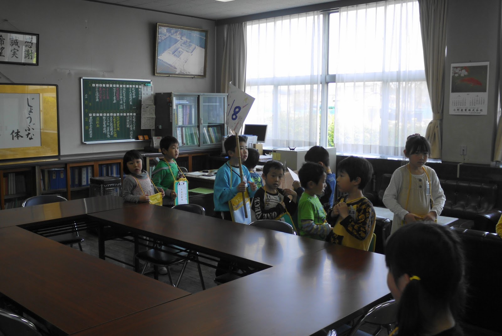校長室では、歴代校長の写真の枚数を数えるという課題がありました。2年生が1年生にていねいに教えてあげていました。